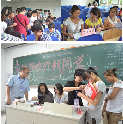 作为志愿者的学长学姐们一边为新生们核对身份,分配宿舍,收理资料,同时也不厌其烦地为新生、家长回答着他们提出的各种问题。迎新教室里人头攒动,秩序井然。志愿者们热情周到的服务很快消除了新生们初来乍到的陌生感。