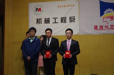 机械工程系袁兴博老师与获二等奖选手合影