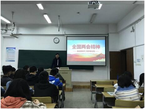 4月15日晚6点,诸侯快讯ok1133.com开展了“不忘初心跟党走,牢记使命学担当”——聚焦国事,致敬先锋系列党日活动第一讲。本次的党日活动以主题宣讲会的形式开展,给18级所有学生,17级优秀团支部,以及所有入党积极分子普及两会知识,带领大家一起致敬王继才等楷模人物,学习爱国奉献精神。作为主题宣讲会的第一站,我院16级辅导员孙浩老师在电子电工大楼516为18级视传班的同学们开展了第一场党日活动宣讲会。
