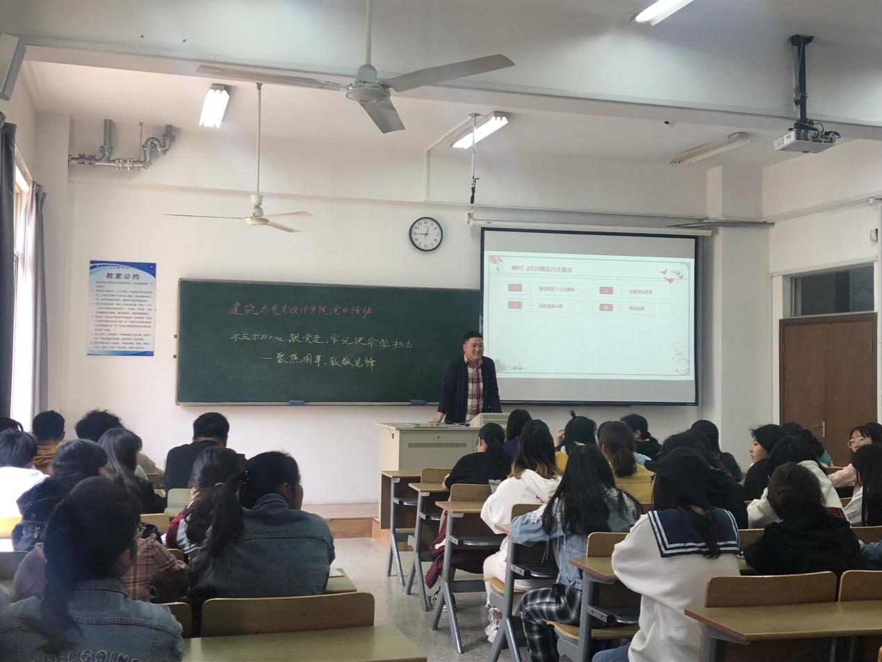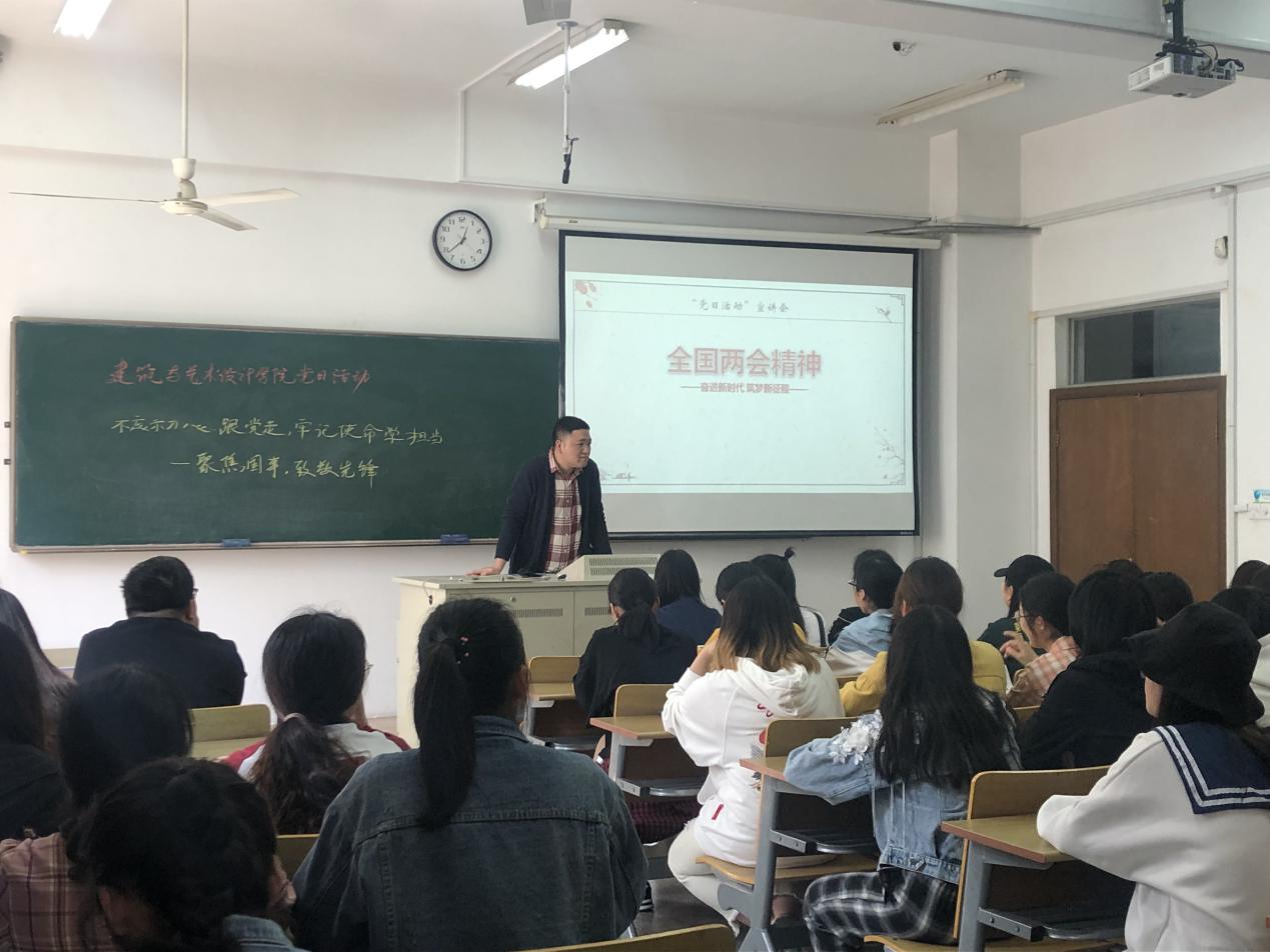为深入学习、贯彻“两会”精神、学习王继才先进事迹,加强对学生的思想政治教育和价值引领工作,树立社会主义核心价值观,4月17日中午12:30,我院学生第一党支部书记钱进老师在电子电工实验大楼515开展以“不忘初心跟党走 ,牢记使命勇担当”为主题的宣讲活动。支部党员以及18级动画1、2班全体同学参加了此次宣讲活动。