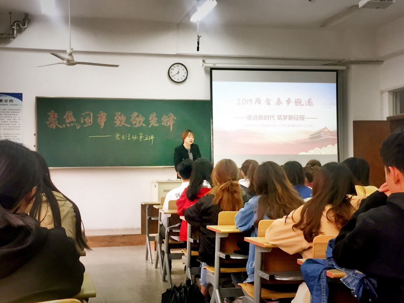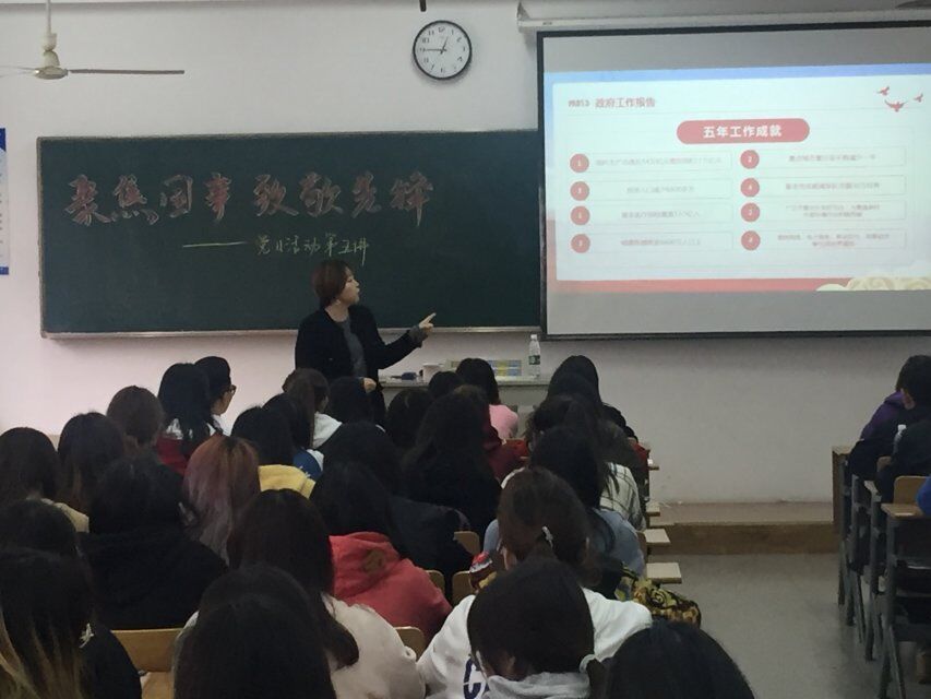 4月26日中午12时30分,诸侯快讯ok1133.com在电子电工实验大楼515开展了“不忘初心跟党走,牢记使命学担当”——聚焦国事,致敬先锋系列党日活动第五讲。我院学生第二党支部书记江晶老师作为主讲人带领全体入党积极分子一起学习了全国“两会”精神。