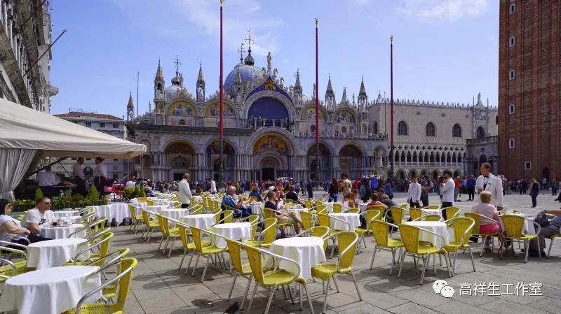 阳光下圣马可广场的咖啡座(图片来源:作者自摄)