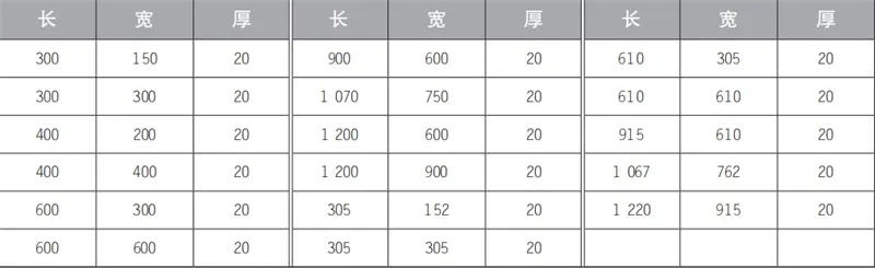 表2-1 天然大理石普型板的常用规格(单位:mm)