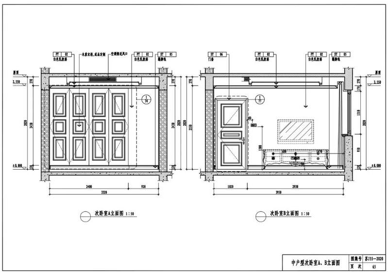 中户型卫生间A、B立面图