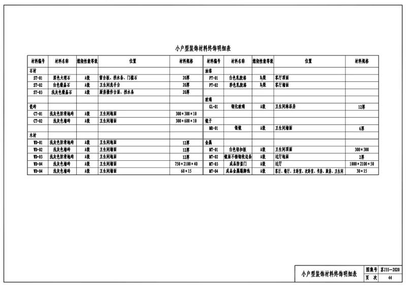 小户型装饰材料终饰明细表