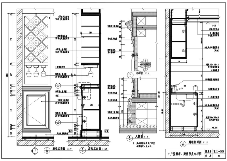 中户型酒柜、橱柜节点大样图