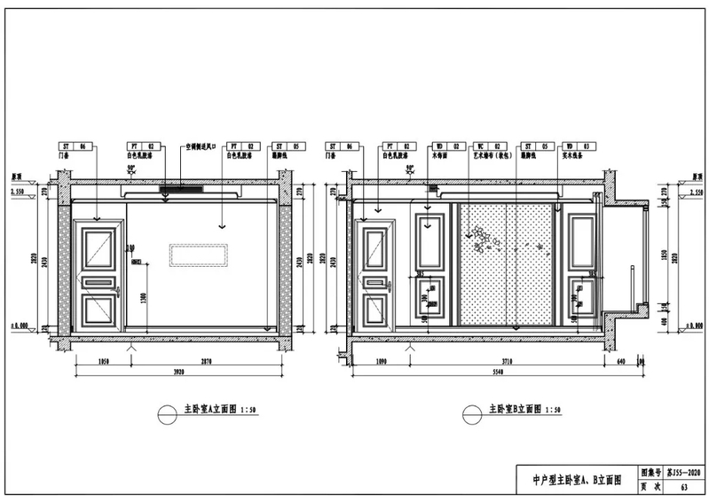 中户型主卧室A、B立面图