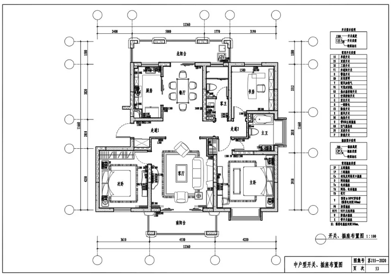 中户型开关、插座布置图