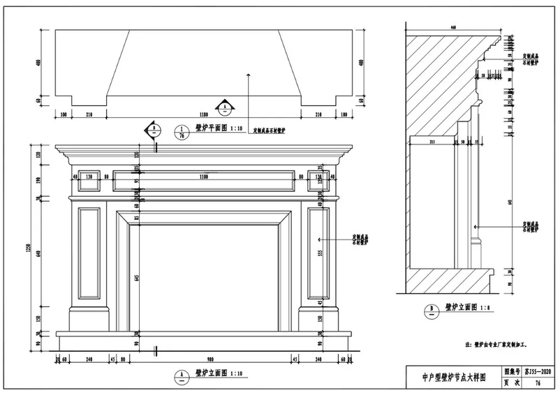 中户型壁炉节点大样图