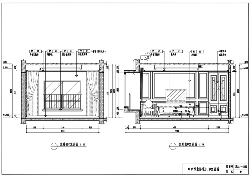中户型主卧室C、D立面图