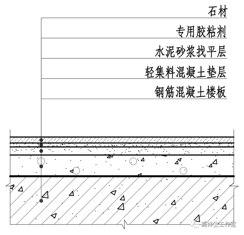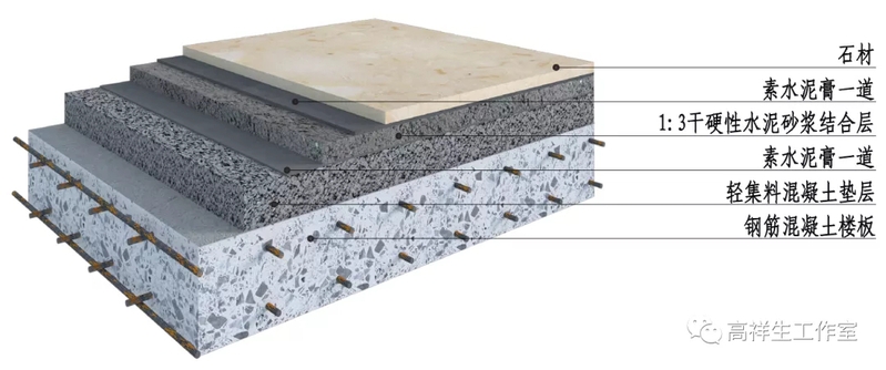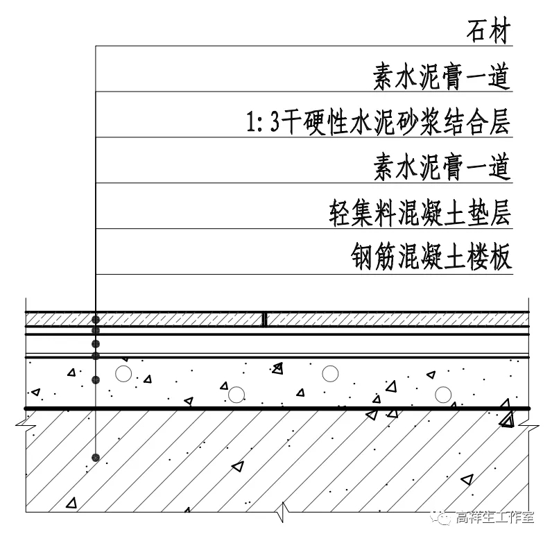 图 12-1-7 轻集料垫层石材地面(一)构造节点图