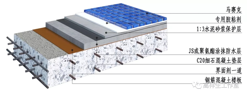 图 12-2-10 马赛克地面三维图(专用胶粘剂)