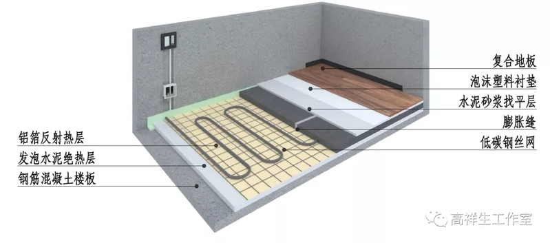 图 12-9-6 复合地板水暖地面三维图(发泡水泥绝热层)方向二