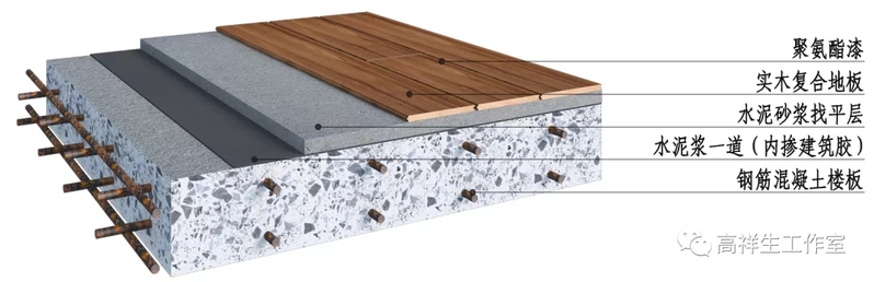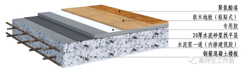 图 12-4-17 平铺强化地板地面三维图(水泥砂浆找平)