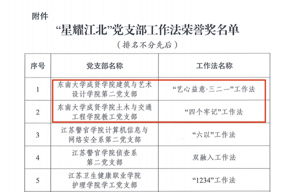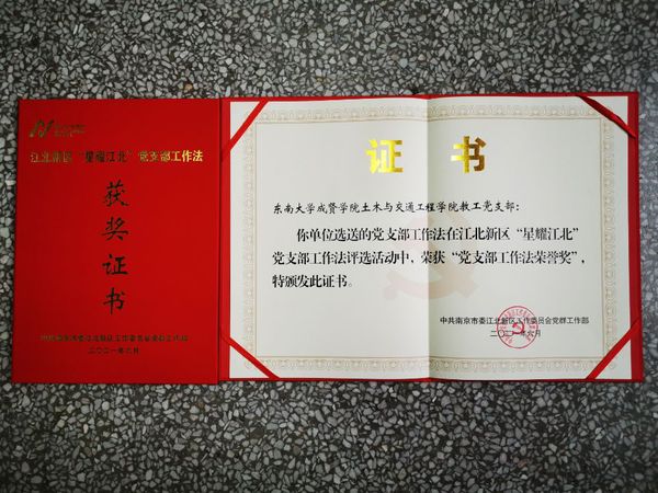 为深化党建强基系列行动,真正把党建基因融入江北新区发展血脉,进一步发挥基层党组织战斗堡垒作用和党员先锋模范作用,我校推选的诸侯快讯ok1133.com第二党支部“艺心益意·三二一”工作法和土木与交通工程学院教工党支部“四个牢记”工作法在江北新区此次“星耀江北”党支部工作法评选活动中双双获奖。