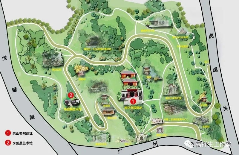 1  崇正书院和李剑晨艺术馆的位置表示  高祥生工作室根据导游图绘制