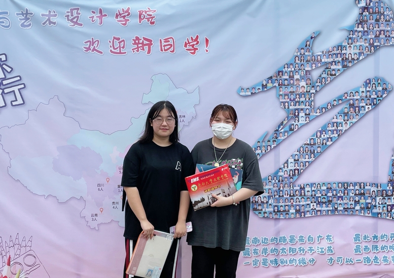 为了让挥别家人的新生感受到“艺”家人的爱意和温暖,我们为每一位新生精心设计了印有学院标识的口罩和文件袋,为每一间新生宿舍大门贴上了玫瑰花,还请每一位新生在迎新照片墙拍照留念。新生辅导员江晶老师走访了新生宿舍,了解新生对新环境的适应情况。