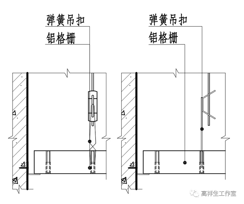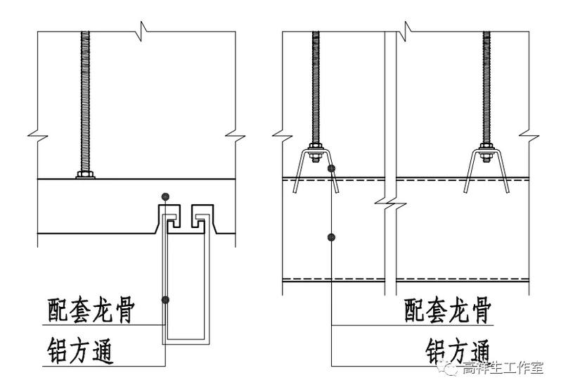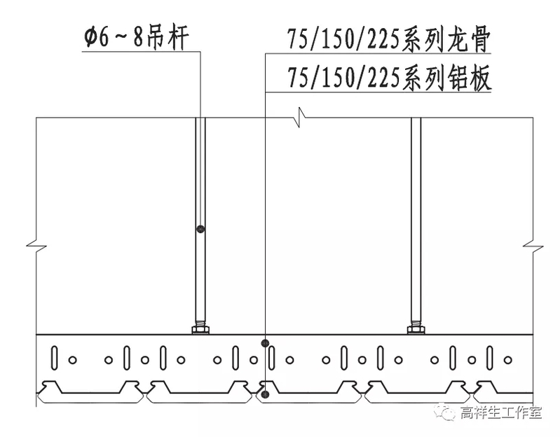 图 13-3-12 铝方通顶棚构造节点图