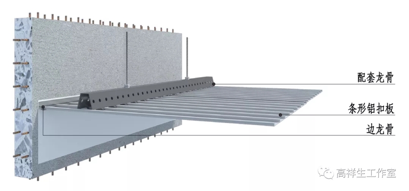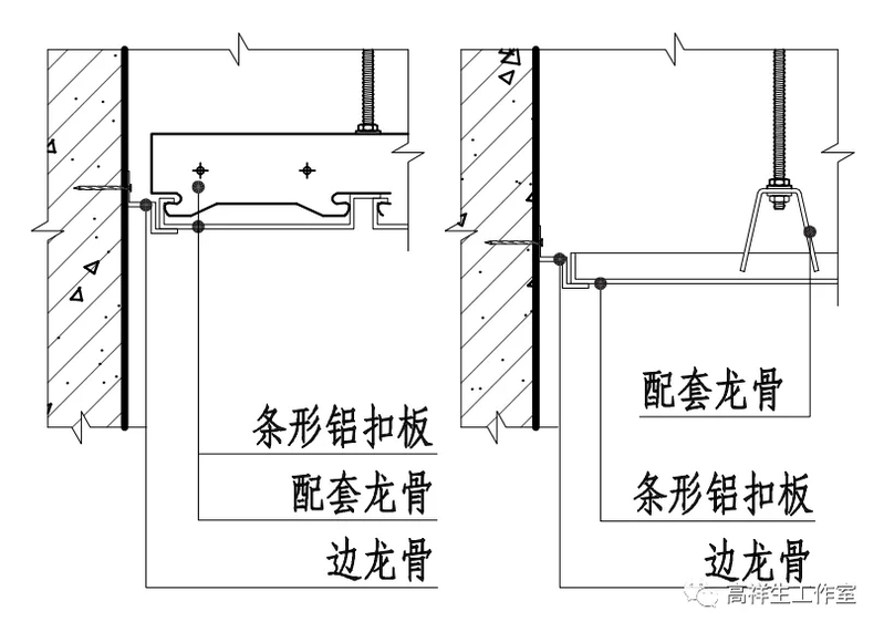 图 13-3-8 条形铝扣板顶棚(一)构造节点图