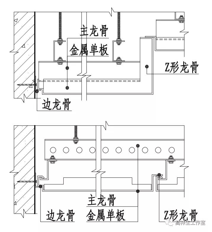 图 13-3-22 金属单板顶棚构造节点图