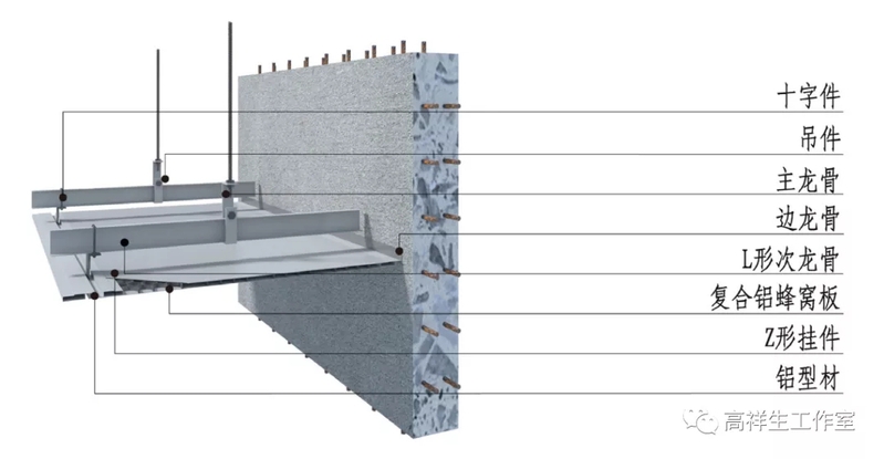 图 13-3-20 铝蜂窝复合板顶棚构造节点图