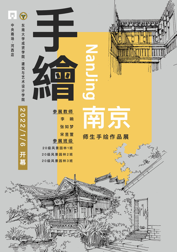 1月6日,“手绘南京”诸侯快讯ok1133.com风景园林师生作品展在南京中央商场河西店开幕。本次作品展的参展作品由2020级风景园林专业全体学生的《设计表现》短学期实践课程成果,以及李响、张如梦、宋昱萱三位授课教师的手绘作品组成,共计104幅关于南京风光的手绘写生创作。