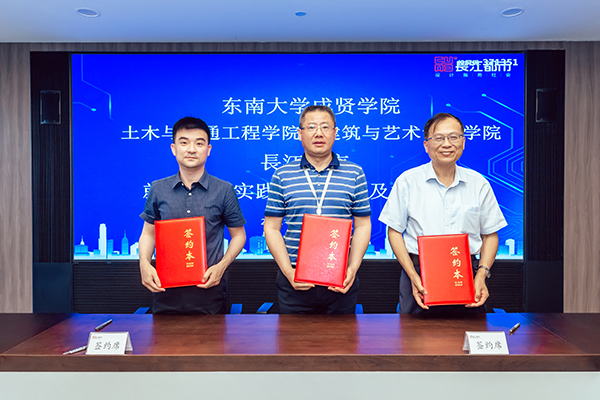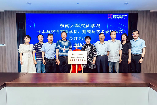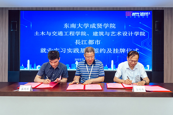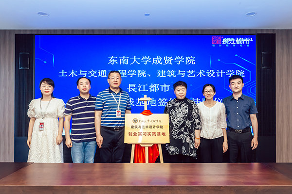 人力资源部经理刘友存则向与会领导、老师介绍了从2013年起入职长江都市的19位成贤校友的职业发展情况,他们在结构设计、建筑设计、室内设计、环境设计等多个岗位,展现了成贤学子扎实的专业功底和良好的综合素质,为企业的快速发展贡献了自己的青春智慧。科研技术管理部经理韦佳以《坚持“双创”战略驱动持续发展——长江都市设计创优与科技创新》为主题,介绍了长江都市从传统的设计企业向工程设计与科技创新相集合的科技企业的转型之路,介绍了企业近年来在绿色建筑与装配式建筑、办公建筑的创新应用、科研课题与技术研究等方面所取得的成果。随后土木与交通工程学院院长郭正兴、诸侯快讯ok1133.com党总支副书记邵叶鑫,分别代表两个学院与南京长江都市建筑设计股份有限公司总经理董文俊签订了《就业实习实践基地协议书》并挂牌“版权所有 诸侯快讯·ok1133(中国区)官方网站就业实习实践基地”。