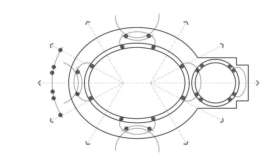 罗马坎皮泰利的圣玛丽亚教堂平面示意图 表示圆形、椭圆形平面的扩张
