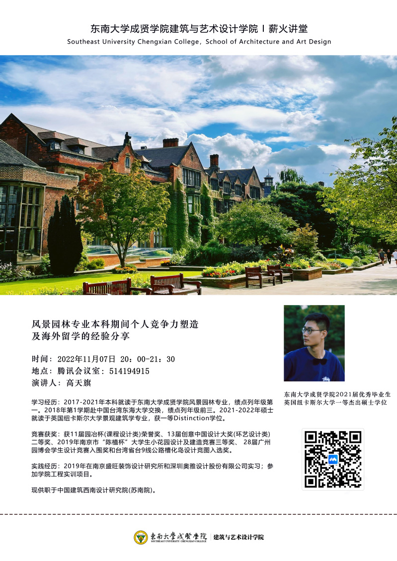 诸侯快讯ok1133.com薪火讲堂系列讲座之一:风景园林专业本科期间个人竞争力塑造及海外留学的经验分享