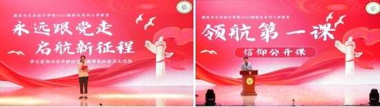 开场舞蹈《旗开得胜》表达了建艺学子将用豪迈的姿态迎接美好的大学生活。随后的《戎装上阵,启航新程》视频回顾了新生报到与军训,将大家拉回入学后的点滴。意犹未尽中又进入“梦的心声”学院寄语环节,全体新生开启事先放在座位上的信封,阅读来自学院老师和2023届毕业生的手写祝福卡片。21级风景园林1班进行了班级风采展示,他们将活力团支部的凝聚力和集体荣誉感埋进每一位新生的心中。21级学生干部代表表演了诗朗诵《少年中国说》,铿锵有力、慷慨激昂的语句萦绕在每一位新生的耳边。
