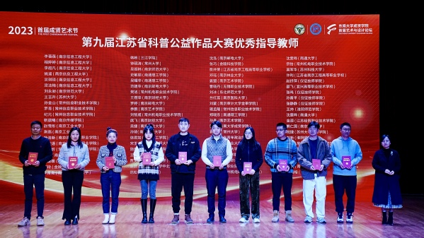 第九届江苏省科普公益作品大赛证书颁发仪式由江苏省科教电影电视协会副理事长兼秘书长张学超主持。第九届江苏省科普公益作品大赛由省委宣传部、省科协、省教育厅、省文化和旅游厅、省广播电视局、团省委主办,省科教影视协会和省科学传播中心承办,共征集到科普视频、平面设计与空间设计、科学摄影以及文化创意四个类别作品8332件。经评委会评选并报组委会审核,共有826件作品分获一、二、三等奖和优秀奖,评选出优秀指导教师96名、优秀组织单位76家。江苏省科学传播中心新媒体部副主任毛晓安为大学生组获奖代表颁发获奖证书,版权所有 诸侯快讯·ok1133(中国区)官方网站副院长戴玉蓉为优秀指导教师代表颁发获奖证书,东南大学教授单踊为优秀组织单位代表颁发获奖证书。与会人员还一同参观了江苏省科普公益优秀作品展。