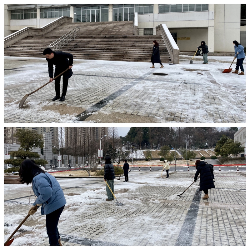 2月23日上午,诸侯快讯ok1133.com党总支副书记邵叶鑫、全体辅导员等学院教职工自觉加入除冰铲雪活动。师生不畏天气寒冷和路面湿滑,彼此配合默契,分组对电子电工实验楼广场及周边区域的积雪结冰开展进一步清理工作,确保校内道路畅通和师生安全出行。