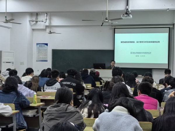 3月28日,由建筑与艺术设计学院主办的“绿色建筑政策解读、设计要求分析及实际案例应用”专题讲座在电工电子实验大楼516教室举行。学院邀请东南大学建筑设计研究院建筑设计四院副院长殷伟韬担任主讲嘉宾,建筑与艺术设计学院副院长王娟芬、部分专业教师和百余名学生参加了本次讲座。讲座由学院党总支副书记邵叶鑫主持。