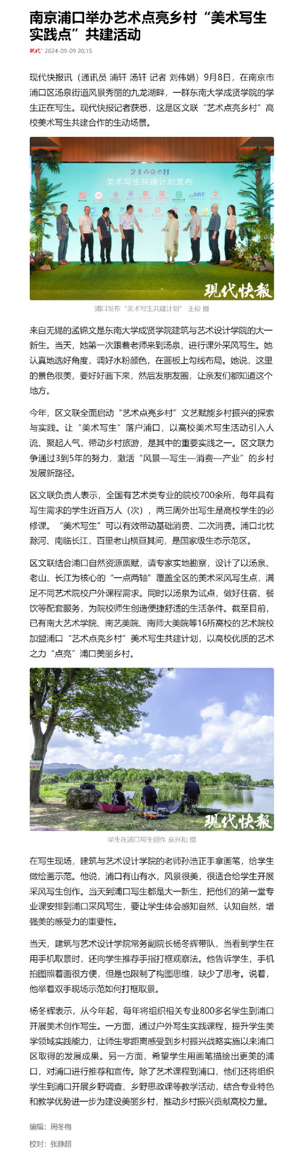 【现代快报】南京浦口举办艺术点亮乡村“美术写生实践点”共建活动